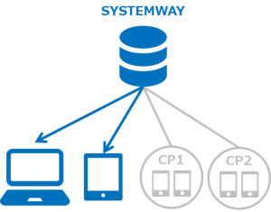 1~5分毎(任意で設定可能)に各地店のデータが更新され、SYSTEMWAYに情報集約されます。閲覧画面はマルチデバイス対応で、インターネットに接続可能なPC・タブレット・スマートフォンで随時閲覧可能。もちろん選手への公開も可能です。